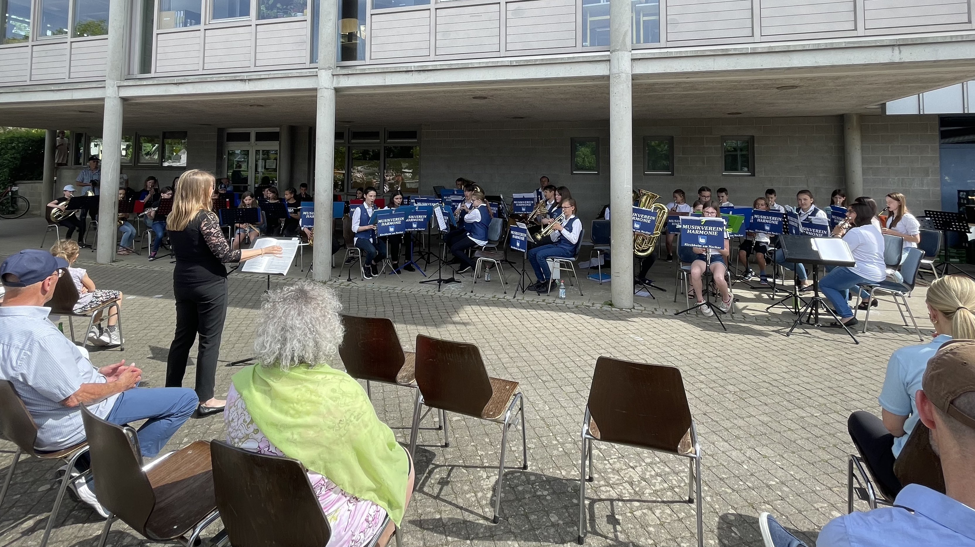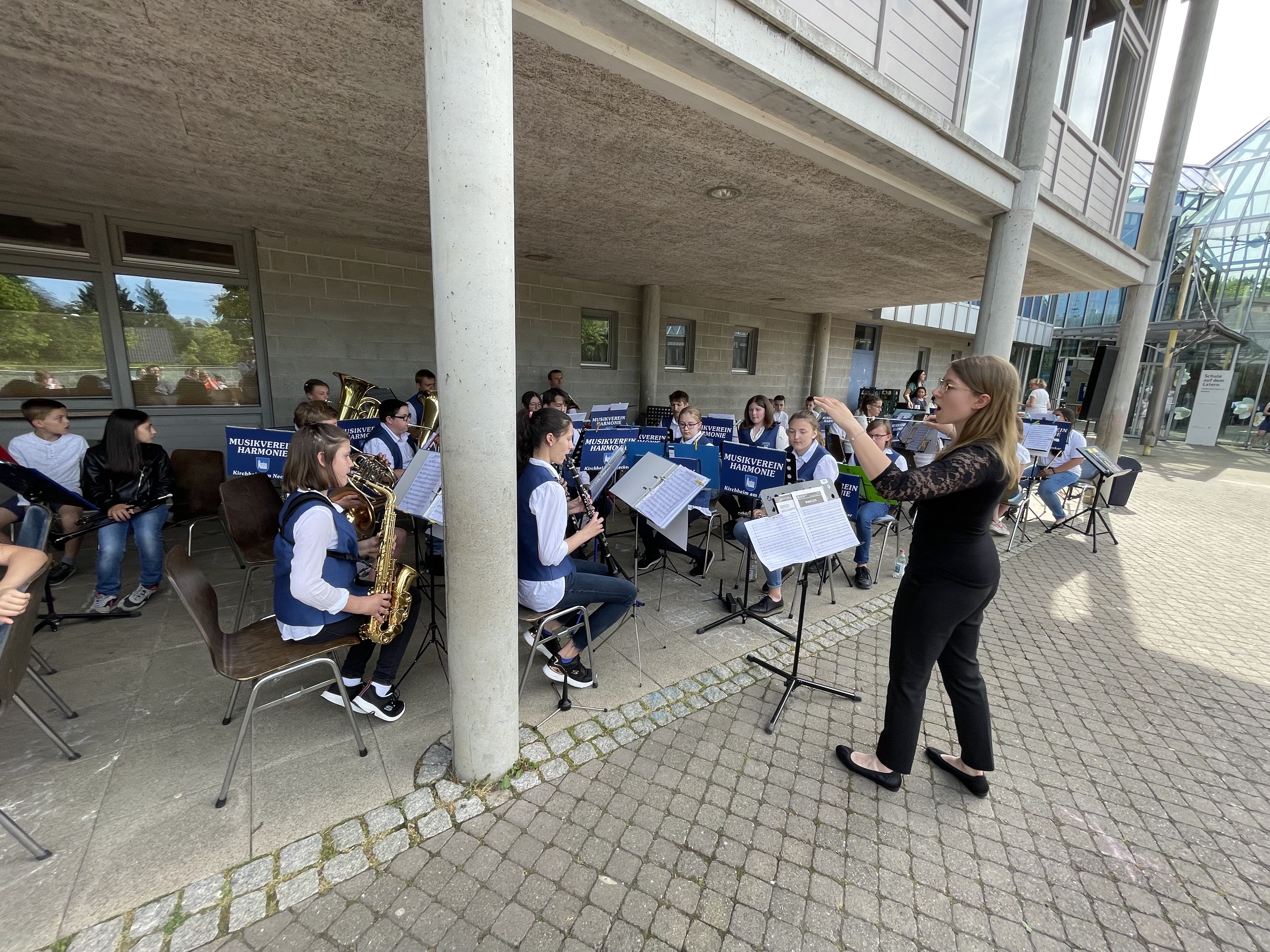 Bei herrlichem Sonnenschein fand das Konzert der Jugend des Musikvereins Harmonie Kirchheim statt. Auf dem Schulhof der Schule auf dem Laiern musizierten die Rookies, die Jugendkapelle und die Bläserklasse gemeinsam. Den Musikern konnte man ansehen, dass sie ihr erstes Konzert nach so langer Pause in vollen Zügen genossen. Das musikalische Highlight folge am Schluss, als alle Kapellen im Massenchor zusammen spielten.