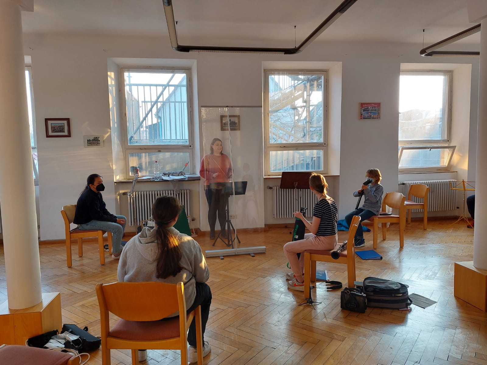 vlnr: Nadine Högler (Jugenddirigentin), Julia Grimm (Blockflöten), Nora Bohnenstingl (Jugendleiterin), Kathrin E. (2. Jugendleiterin)