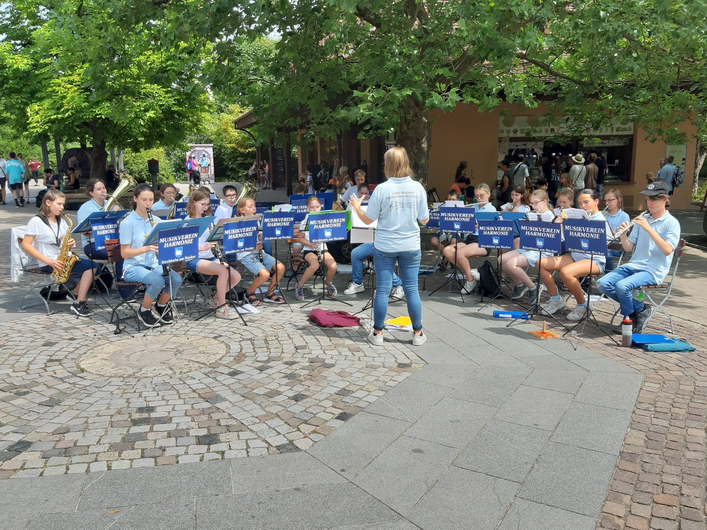 Zum Mittag fand ein Platzkonzert statt. Das Gesamtorchester, bestehend aus Rookies und Jugendkapelle, begeisterte die Parkbesucher mit ihrer modernen Literatur.